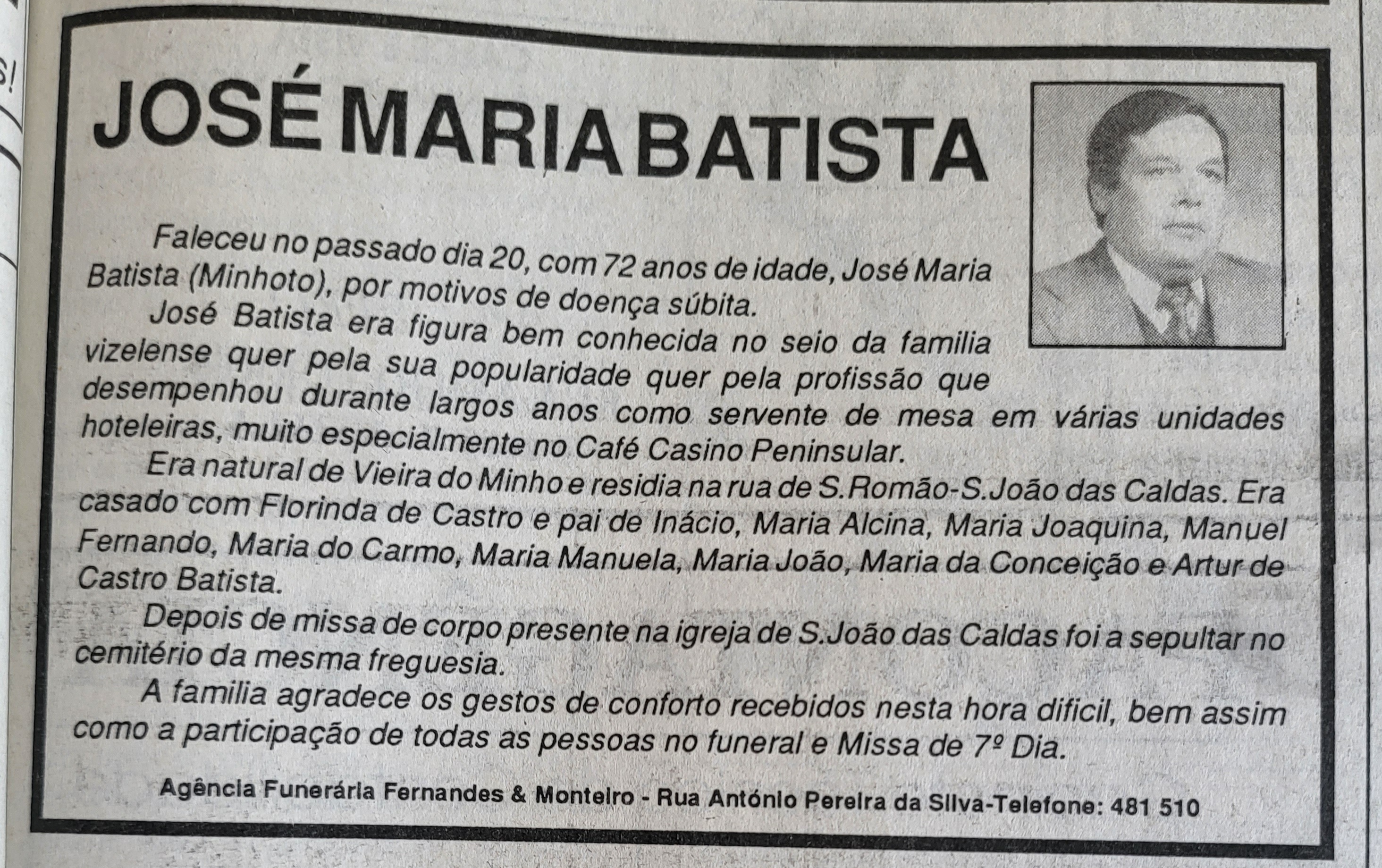 Falecimento José Maria Batista